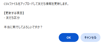 - 「友だち情報を更新する」ボタンをクリックすると、確認ダイアログ