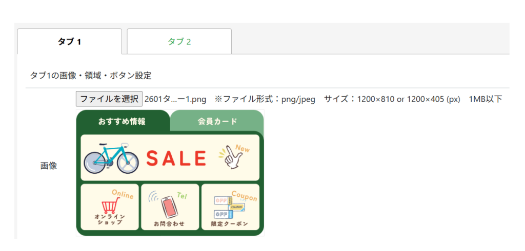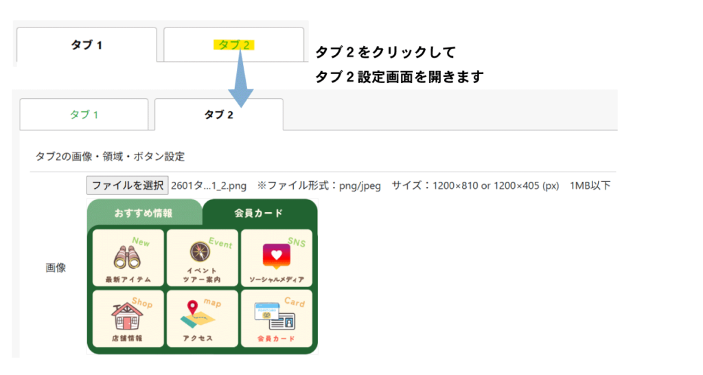 「ファイルを選択」をクリックし、タブ2用の画像を選択します。