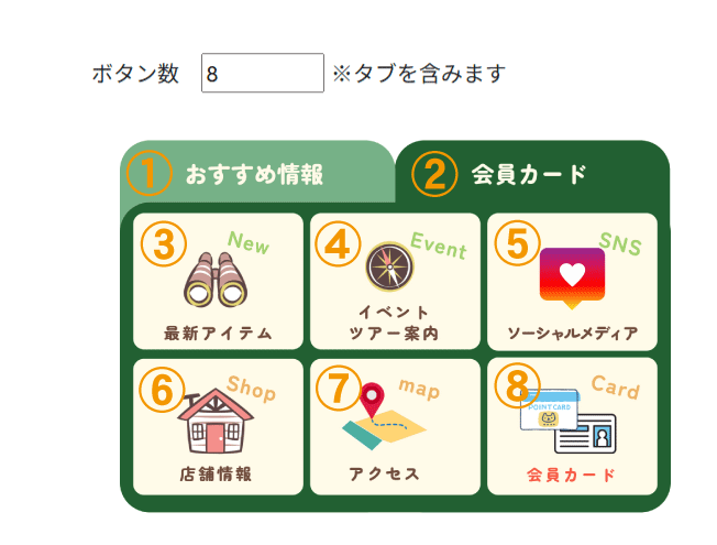 「5.タブ1のボタン数を設定する」と同様に、ボタン数を設定します。
