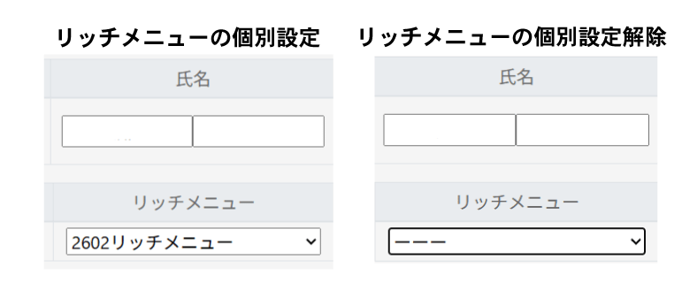 氏名下のリッチメニューより該当のリッチメニューを選択し、「登録・更新」してください。