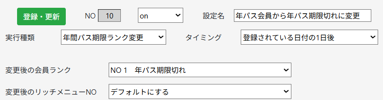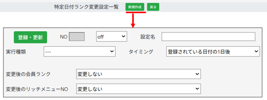 特定日付ランクオートメーション変更設定